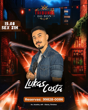15 -08 –sexta – 21H00 – Show com LuKas Costa